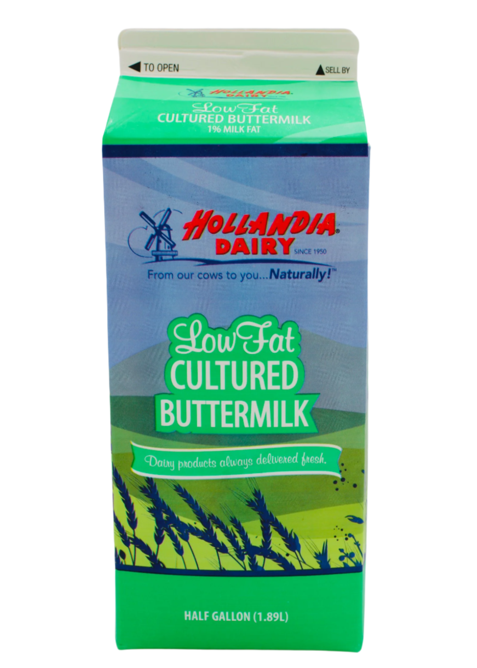 Hollandia Dairy Low-Fat Cultured Buttermilk is conveniently delivered as a single half gallon. This product is ultra-pasteurized for extended shelf life, it’s essential for every kitchen and business.