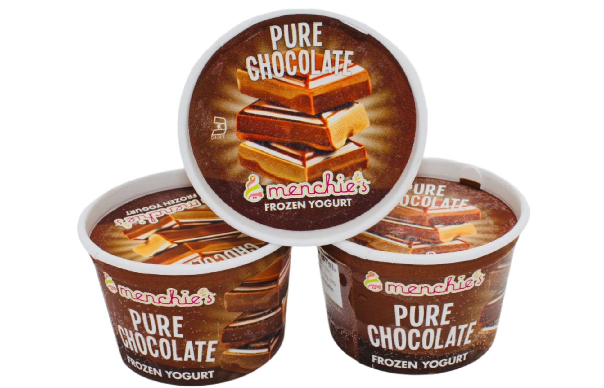 Menchie's Pure Chocolate Frozen Yogurt, 3.5 oz cups (48 per case), offer a chocolate flavored desert in a convenient single-serving cup.