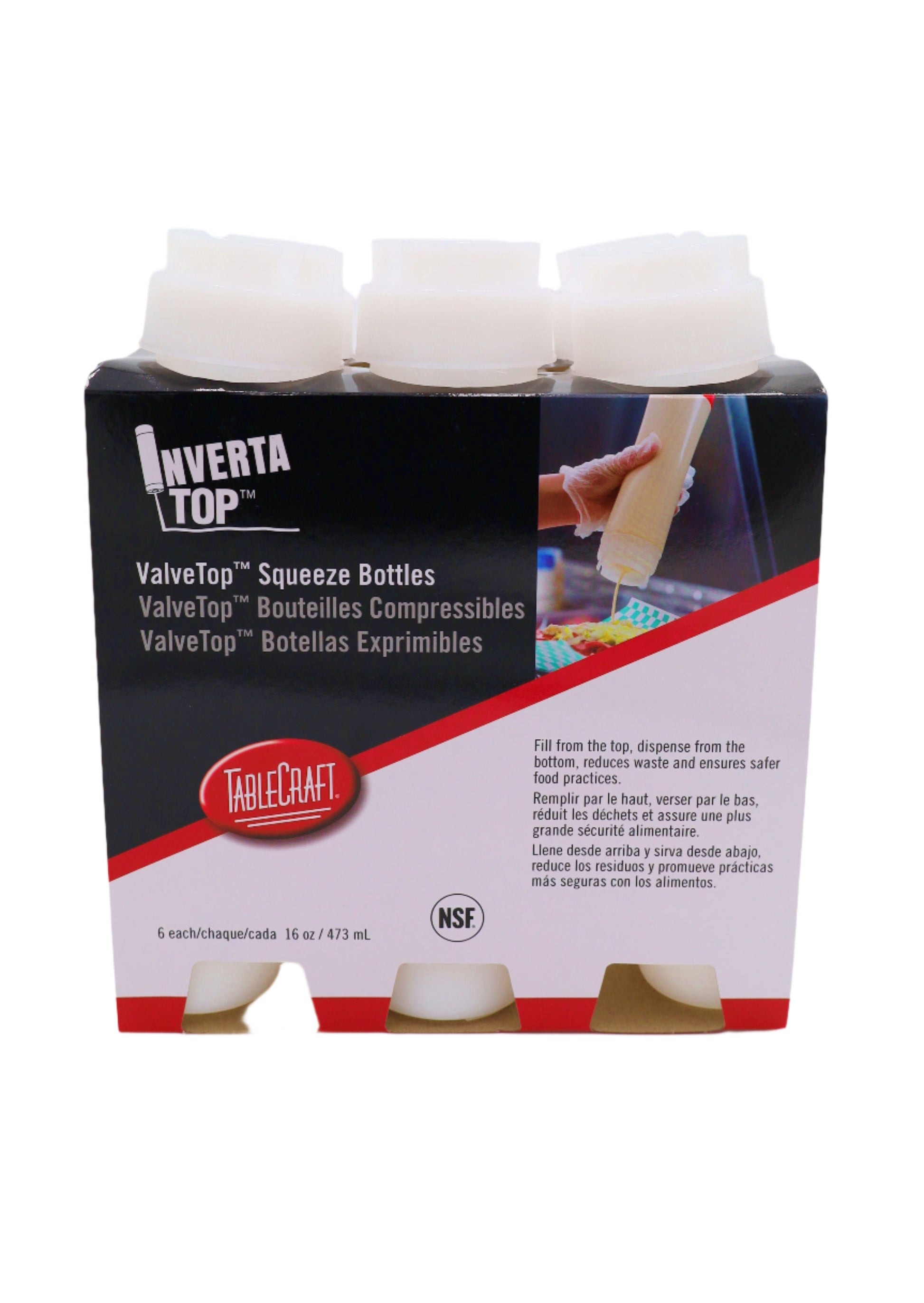 This 6 Pack of 16 oz top-fill, bottom-dispense bottles minimize waste and mess. Great for syrups, sauces, and toppings in busy kitchen or café settings.